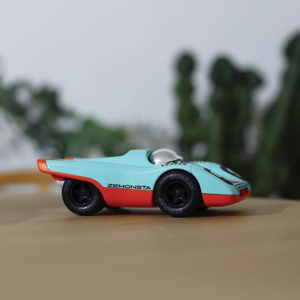 A bold, beautifully crafted toy inspired by the legendary Porsche 917. With its sleek lines, powerful design, and retro racing flair, this collectible car combines playtime fun with display-worthy style. Built for speed and imagination, Klaus is ready to race — on the track or the shelf.